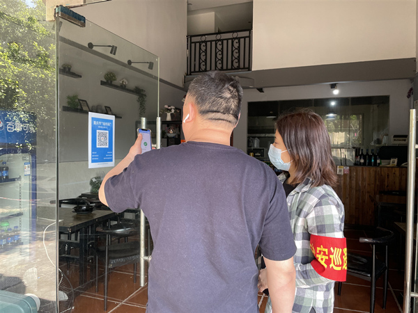 “阿姨,進餐館也需要主動出示渝康碼和掃描場所碼進行登記,這樣才能確保大家安全出行,謝謝您的配合!”工作人員提醒居民出入公共場所進行掃碼登記,并督促商家嚴格落實“兩碼查驗+測溫”、消毒消殺等防疫措施,筑起疫情防控社區第一道防線,切實落實好各項防控措施,全力守護好社區居民生命安全。