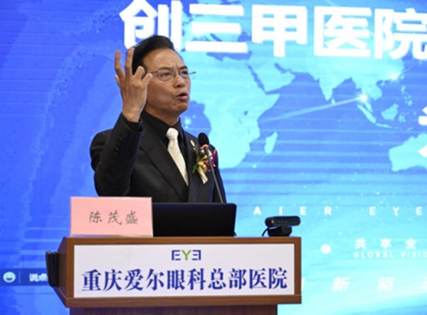 陳茂盛動員講話。重慶愛爾眼科醫院總院供圖