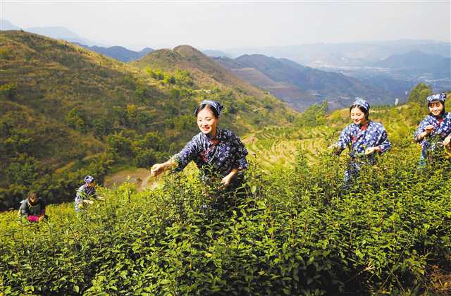 萬盛經開區南桐鎮民權村定青生態茶園,工人在采摘春茶。(資料圖片)特約攝影曹永龍/視覺重慶