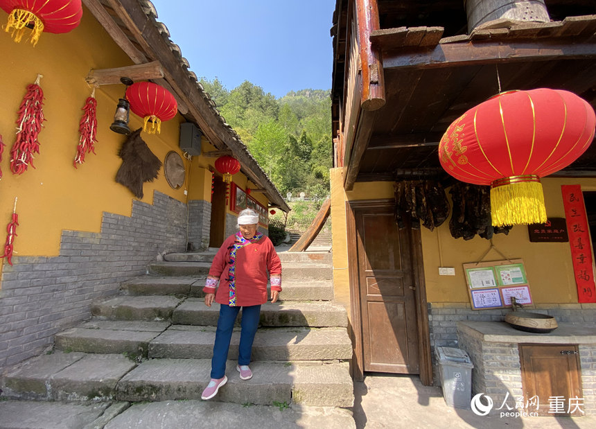 在公路邊下車,走過一段潔凈平整的石板路,便到了89歲村民馬培清老人的家。滿頭銀發、身著土家族服飾的馬培清正從外面散步回來?!翱?,院里坐?!边~步下石階的老人精神矍鑠,熱情地招呼記者。
