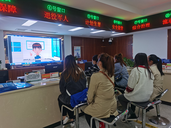 有關人員現場觀看“醫;鸨O管”宣傳視頻;嘏d街道供圖