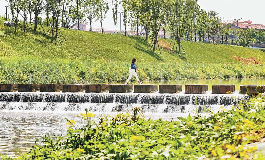 河水清澈,花香撲鼻,4月20日,西部(重慶)科學城梁灘河兩岸,吸引了市民前來游玩。