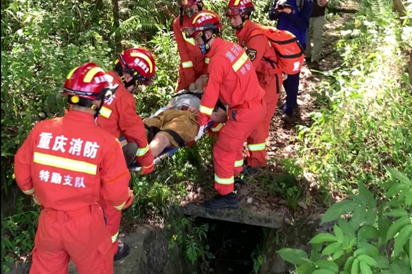消防救援人員正在轉移受傷男子。重慶市消防救援總隊特勤支隊供圖