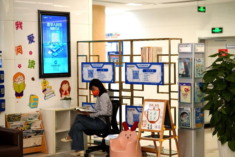 在建行重慶永川華茂國際中心支行勞動者港灣,市民朋友駐足停留,靜心閱讀。建行重慶市分行供圖