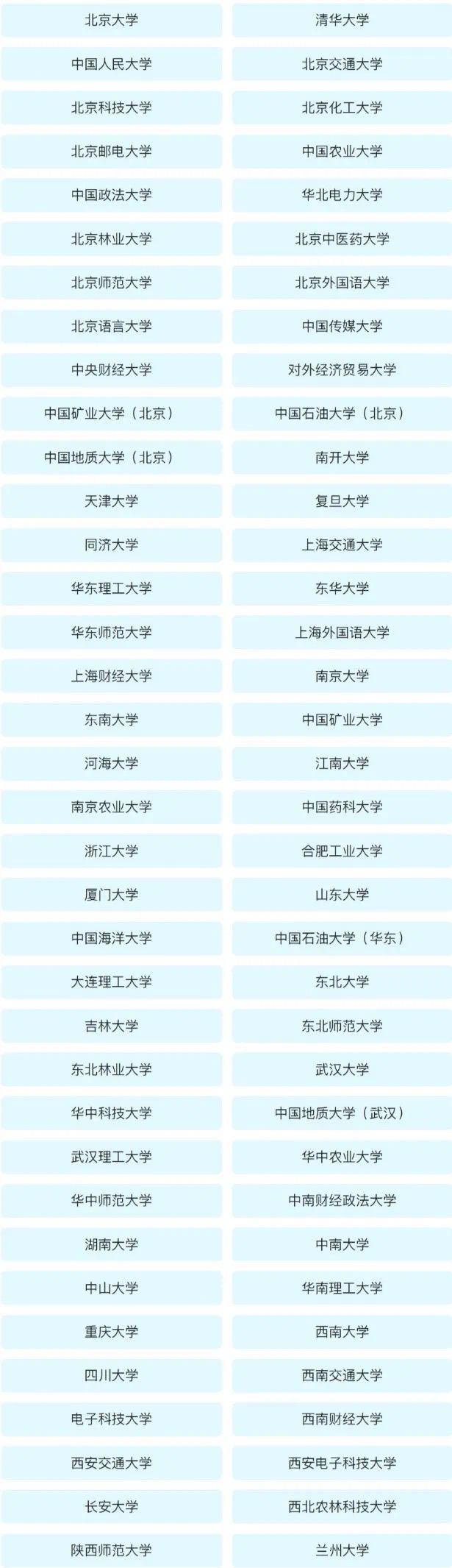 高校名單(教育部直屬高校)。重慶市教育考試院 供圖