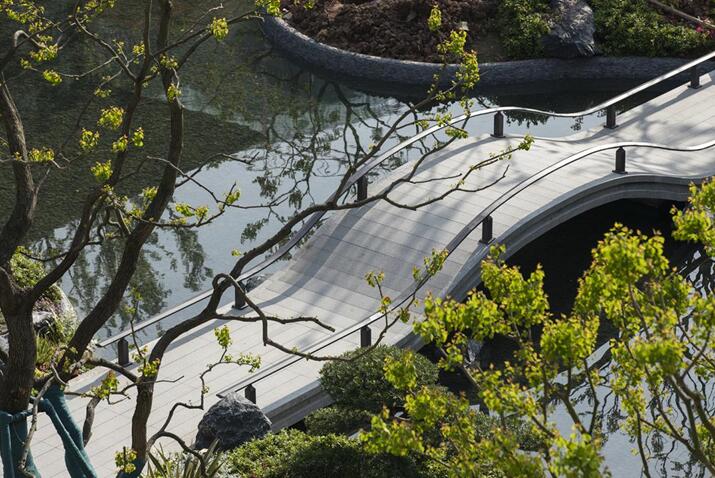 據了解,新鷗鵬巴川郡在景觀設計上采用了宋氏古典園林的運用風格,注重中軸對稱,特意規劃形成“和悅門、雅鏡園、聽泉榭、四水堂、和雅亭”五重歸家儀式感,營造了兩軸兩界園林結構。圍繞兩軸,從入口處到軸線上的各園景,小橋流水、亭臺樓閣、名貴植物,融合成一幅美麗的畫卷。宋式“飛虹橋”的水上造景,出自享譽盛名的“香山幫”手工砌制,橋面石材鋪陳寓意中國傳統二十四節氣,拱形如虹,寓意步步高升。
