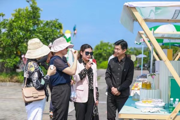 “萬石耕春·柚見花開”重慶·梁平第十屆柚花節活動現場,市民在柚海集市品嘗柚子深加工產品。熊偉攝