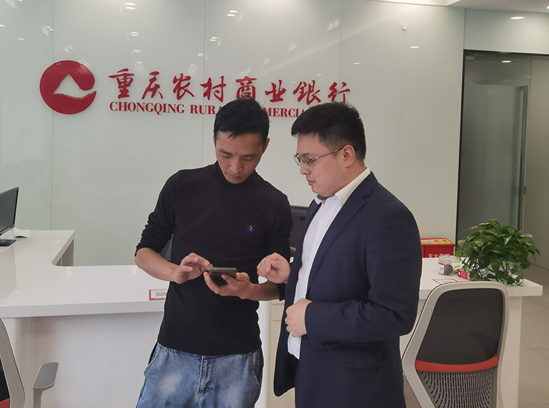 客戶經理指導客戶通過手機銀行App申請“渝快貸”。重慶農商行供圖
