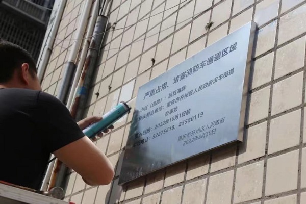 近日,開州區3個嚴重占用、堵塞消防車通道的重點小區被掛牌整治。重慶市消防救援總隊供圖