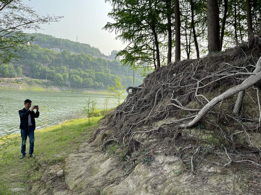 同一時間內,試驗團隊還研究過竹柳、蒼耳等在內的近十種植物,“但綜合成效都比不上中山杉!痹囼瀳F隊領頭人、萬州區林業科學研究所高級工程師任憑介紹,一棵長成的中山杉根系直徑能達到10米以上,且縱橫交錯可覆蓋周圍約80平米的土地,“固土效果相當不錯!