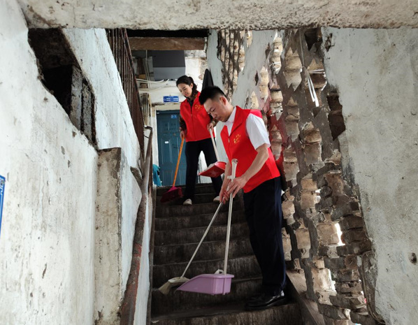 恒豐銀行組織員工在老舊樓院進行大掃除。(資料圖)恒豐銀行重慶分行供圖