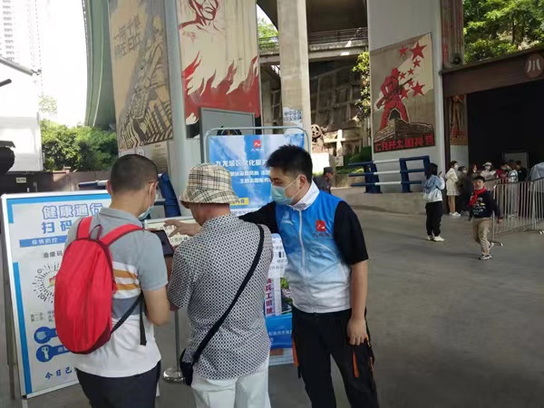 “請出示您的預約信息和健康碼,沒有預約的話,可以掃一下這個二維碼!苯,在華巖旅游風景區北門,九龍坡區文旅志愿者正耐心地幫助游客進行景區預約。每當有游客插隊或者亂扔垃圾等不文明行為發生時,王柯程都會及時上前勸阻!拔拿骱椭C的旅游環境,需要我們共同創造和維護,作為九龍坡的一份子,我希望盡我所能為創建全國文明城區貢獻一份力量!