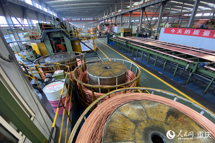 重慶平湖金龍精密銅管有限公司生產線滿負荷運轉。人民網 劉政寧攝