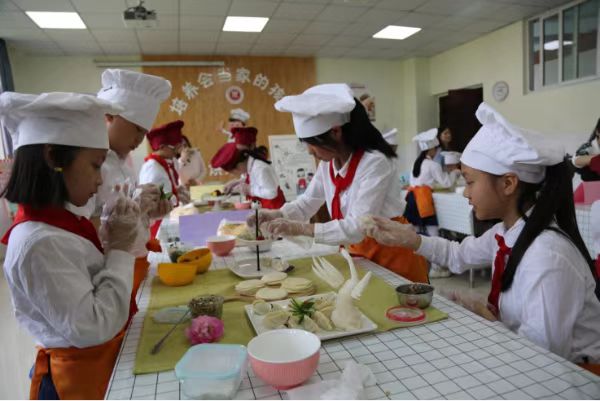 學生們包餃子。兩江新區康莊美地第二小學校供圖