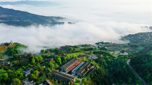 從空中俯瞰清晨的816小鎮,云?澙@,綠樹成蔭。得天獨厚的地理環境,豐富多樣的自然生態和歷史悠久的地脈文化,讓這里成為真正意義上遠離喧鬧都市的理想生活秘境。白濤街道供圖