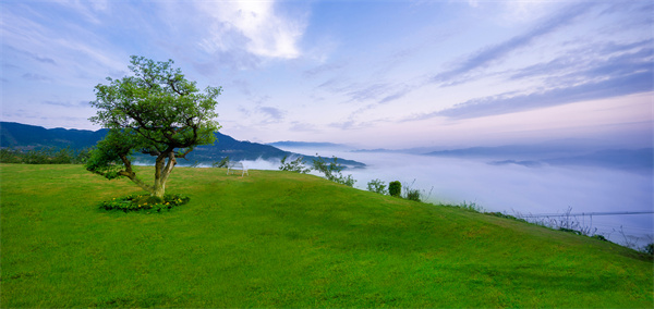 晨霧總是自烏江而上,很快就讓整個星光草坪宛如置身仙境。草坪上這棵年逾七旬的山楂樹,象征著純愛、智慧、能量和守望,是詮釋816精神的守護之樹、自然之樹和人性之樹。白濤街道供圖