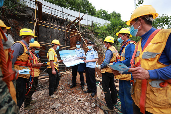 在開展防災減災專題宣傳活動期間,民警還結合日常安全檢查,對施工現場安全防護措施,應急物資儲備等開展了一輪專項隱患排查治理,幫助企業從源頭上“把脈問診”、消除風險。并督促指導企業加強應急能力建設,尤其是應對夏季暴雨、雷電、泥石流等突發自然災害的應急處置能力,構建多元防災減災工作格局。同時,民警還針對防范電信網絡詐騙、保障鐵路安全等內容進行了集中宣講。(劉政寧、胡勇)