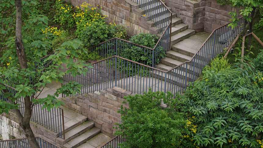 據了解,曾家巖南橋頭步道作為“兩江四岸”治理提升嘉陵江岸線貫通工程的組成部分,由城市陽臺及坡地步道綠化兩個部分組成,總占地面積約6748㎡,其中城市陽臺約4410㎡,周公館后側坡地步道綠化面積約2338㎡,建設內容包含:園林綠化、廣場、步道硬質鋪裝、功能照明、給排水及其他相關配套設施,已于去年10月完工。