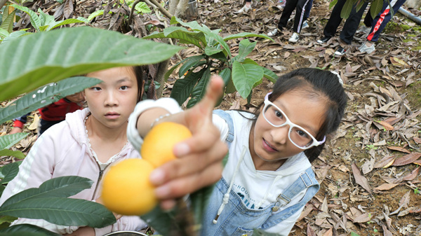 孩子們正在采摘枇杷。黃智宇攝