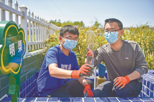 工作人員在污水處理站監測水質情況。廣安區委宣傳部供圖