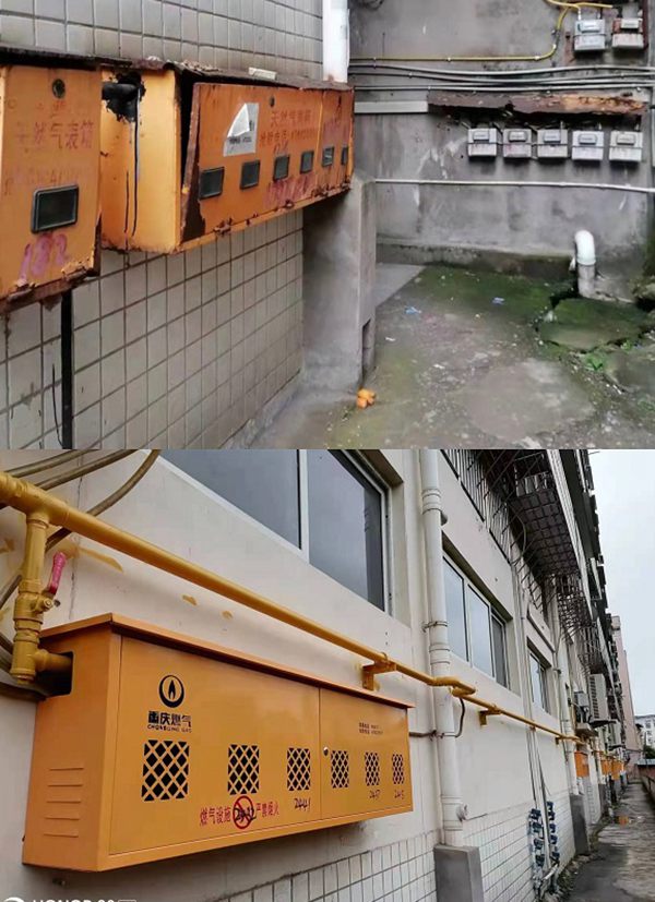 掛牌督辦、重新設計安裝、基礎設施改造,各項隱患整治工作都緊鑼密鼓地開展。江津公司還積極召開隱患整改院壩協調會,與當地居民充分溝通,了解居民的具體情況和需要解決的問題。目前,已全面完成賈嗣鎮新舊管道系統切換工作和所有非居民場所的燃氣泄漏切斷裝置的安裝,為賈嗣片區更換“超齡”調壓箱27臺、到期氣表376塊,同期完成了東北街9棟居民樓的整體改造、6家單位天然氣用戶的戶內隱患整改。