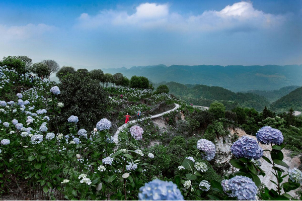 以花“妝點”人居環境,在道路沿線、大興村田園綜合體、大祥茶業基地種植繡球花、格;、油菜花近千畝,有了百花美景加持,鄉村“顏值”不斷提升。石龍鎮供圖