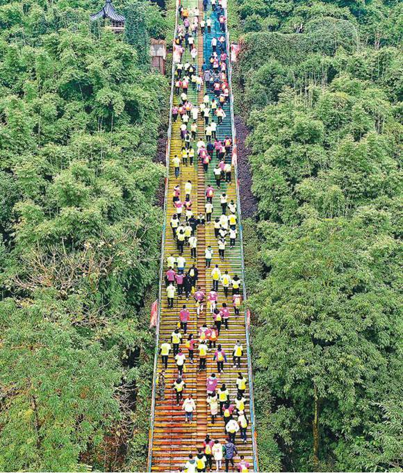 萬盛經開區奧林匹克公園,市民正在攀登“奧運之路”迎接新年。該公園規劃面積三千多畝,以奧林匹克文化為特色,是當地市民運動健身休閑的重要場所。(攝于二〇二〇年十二月三十一日)通訊員 王瀘州 攝\視覺重慶