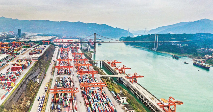 “河海不擇細流,故能就其深!敝貞c全面參與共建“一帶一路”和長江經濟帶發展,不斷拓展開放通道、提升開放平臺、做強開放主體、優化開放環境,通過建設內陸開放高地,努力在西部內陸地區帶頭開放、帶動開放,一條條物流大通道,架起重慶溝通全球、對話世界的橋梁,也激發出經濟發展的強勁動力。