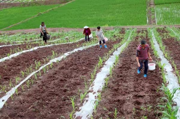 村民正在點播大豆。廣安區融媒體中心供圖