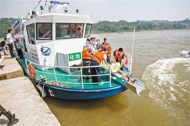 當天上午,記者在江津區濱江路米幫沱碼頭看到,江邊?恐凰野咨≥喆,船頭設有“馴化池”,船身印著“保護珍稀特有魚類”幾個大字。原來,這就是由江津區法院、市珍稀特有魚類國家級自然保護區管理處、江津區林業局共同建設的收容救護中心。