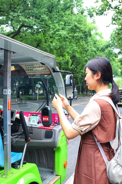 5月以來,西南大學師生乘坐校園觀光車,可使用數字人民幣且享受優惠活動。張睿攝