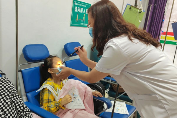 醫護人員為小朋友檢查眼睛健康。璧山區衛生健康委供圖