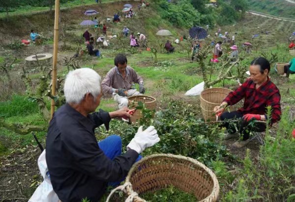 附近加工企業進村收購村民們采摘的花椒。永川區委宣傳部供圖