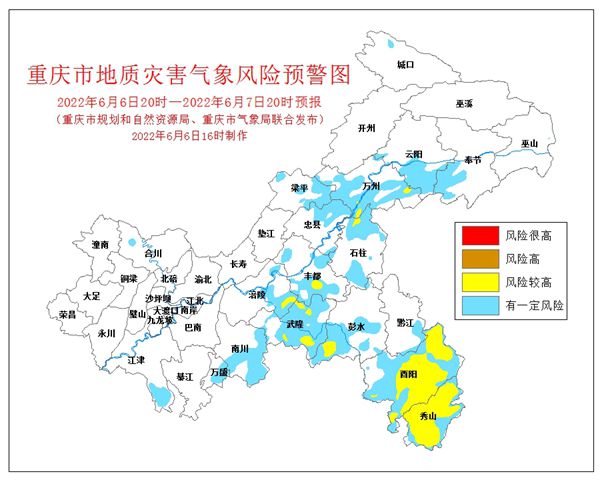 6月6日16時,重慶市規劃和自然資源局、重慶市氣象局聯合發布全市地質災害氣象風險預警。