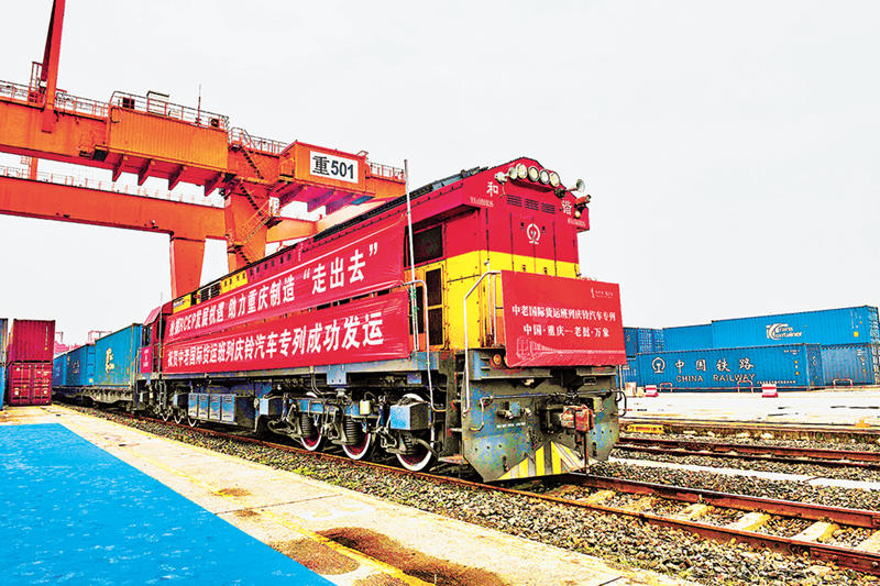 這是重慶自實現“鐵路快通”雙向貫通以來,首趟整列采用“鐵路快通”模式出口的中老國際貨運班列整車專列。該班列的運行,為重慶本地國產品牌汽車整車出口東盟市場節約貨運時效1-3天,降低費用成本,實現“成本+時效”雙優的效果。