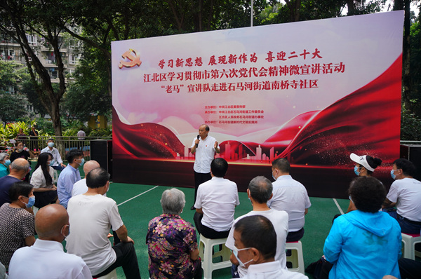 為深入學習宣傳貫徹市第六次黨代會精神,讓基層企業職工和社區群眾能領會、可落實,6月14日,江北區協調組織“老馬”宣講隊走進相關企業和社區,開展市第六次黨代會精神微宣講活動。
