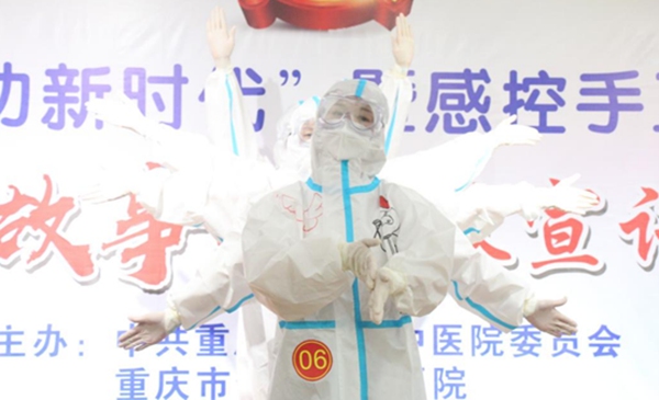 小品《細菌小伙來相親》,通過大家喜聞樂見的表演形式,傳達手衛生科普知識;配樂朗誦《以青春之我,頌百年信仰》,抑揚頓挫,情感豐沛,獲得掌聲回應;舞蹈《病毒走開》,醫護人員穿上防護服,跳著整齊可愛的洗手舞,表達了對群眾的守護之心;詩朗誦《若我歸來》,表達了青年醫生的擔當與奉獻……