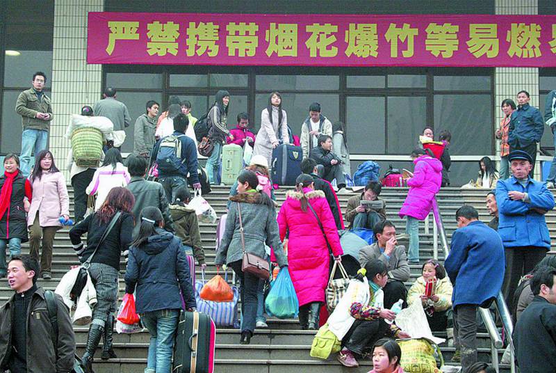 1993年2月,春運期間的重慶菜園壩火車站人頭攢動。 重慶日報供圖