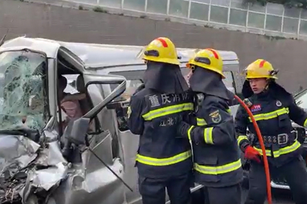重慶內環快速路發生三車追尾事故 消防員成功救出被困司機