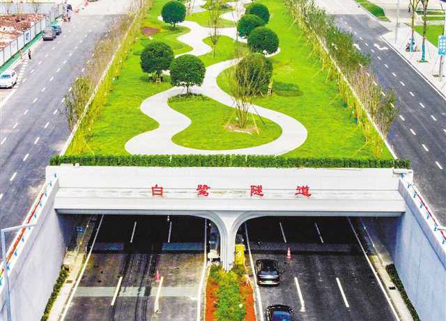 高新大道是科學城核心區主干路,改造工程范圍為白鷺大道交叉口至青竹路交叉口段,改造中將原有90米地下通道向東延長為361米,在頂部鋪設了生態廣場,從而有利于貫通南北綠化走廊,連通片區生態綠廊,助力西部(重慶)科學城“生態之城”建設。首席記者 龍帆 攝/視覺重慶