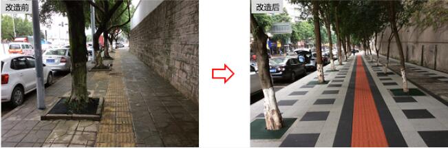 經過市住房城鄉建委等多部門多次協調,最終采用現狀圍墻重建的方式 ,將華渝廠圍墻向后退4.5米,新建起一條長約300米、寬約4.5米的人行道,打通了龍山大道人行道系統,徹底解決了因人行道缺失導致的人車混行問題。完善的人行道鋪裝和道路綠化,也提升了人行交通品質。