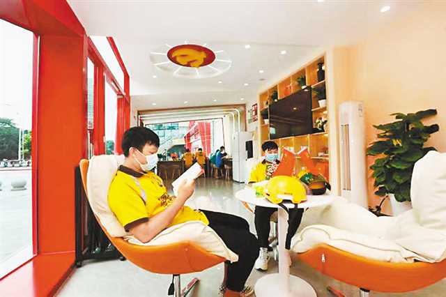 外賣小哥在“暖心驛站”內休息。特約攝影 謝捷\視覺重慶