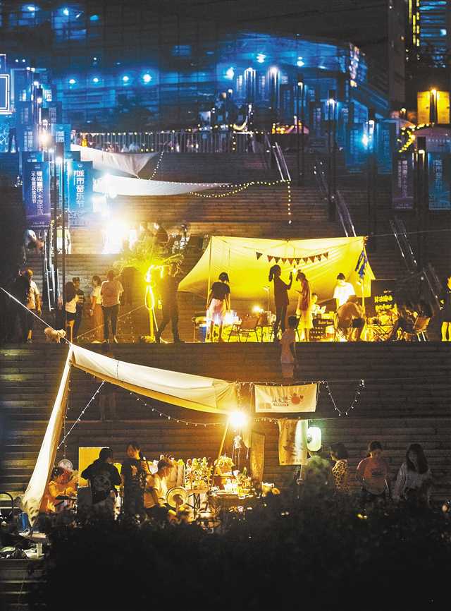 八月五日晚,“2022不夜重慶生活節”在重慶大劇院廣場啟幕,星光帳篷集市吸引了眾多市民。記者 張錦輝 攝\視覺重慶