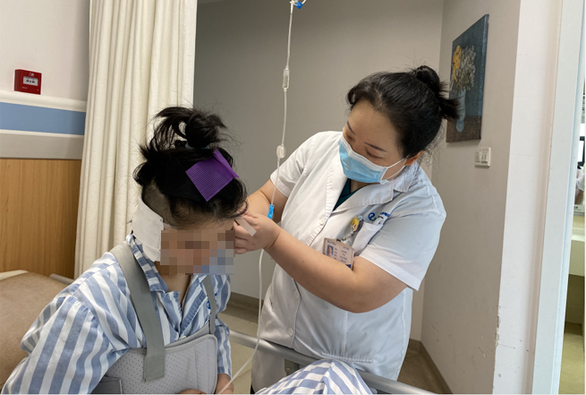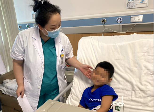 張朝梅為手術后患兒檢查恢復情況。院方供圖