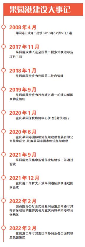 2018年1月,果園港獲批成為我國第二批啟運港;