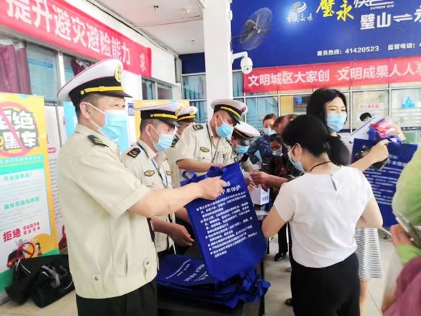 長運璧山分公司聯合屬地交通局開展防災減災宣傳活動。 重慶交運集團供圖
