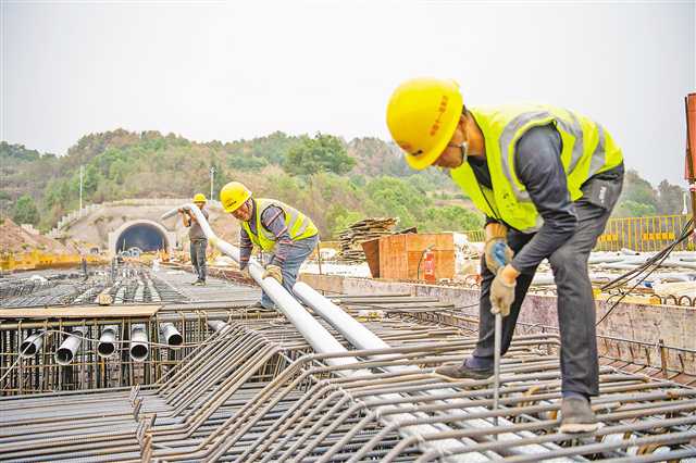 9月20日,位于巴南區惠民街道的渝湘高鐵重慶至黔江段石家沖四變二特大橋建設現場。