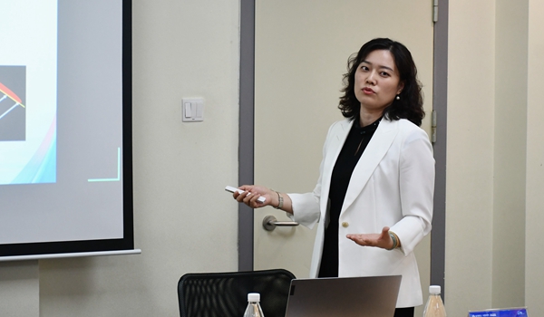 闞秋霞開展《數字化角膜塑形鏡驗配》專題演講。重慶普瑞眼科醫院供圖