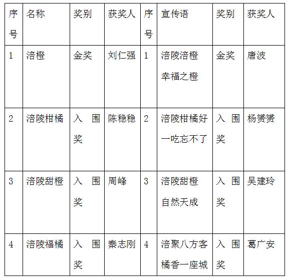 為加快涪陵區農產品區域公用品牌建設,樹立品牌形象、講好品牌故事,推動涪陵農業高質量發展,在歷經4個多月的全國征集、專家評審和逐條查重、查新之后,20萬畝涪陵柑橘的區域公用品牌“名稱”及“宣傳語”,由8名專家最后一輪組評后落錘定音,最終共決出8名獲獎者。