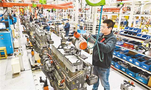 位于沙坪壩區的重慶康明斯發動機有限公司生產車間,工人正在緊張作業。該公司系中美合資企業,是康明斯在中國最大的重載和大馬力發動機專業制造工廠(攝于2月9日)。特約攝影 孫凱芳/視覺重慶